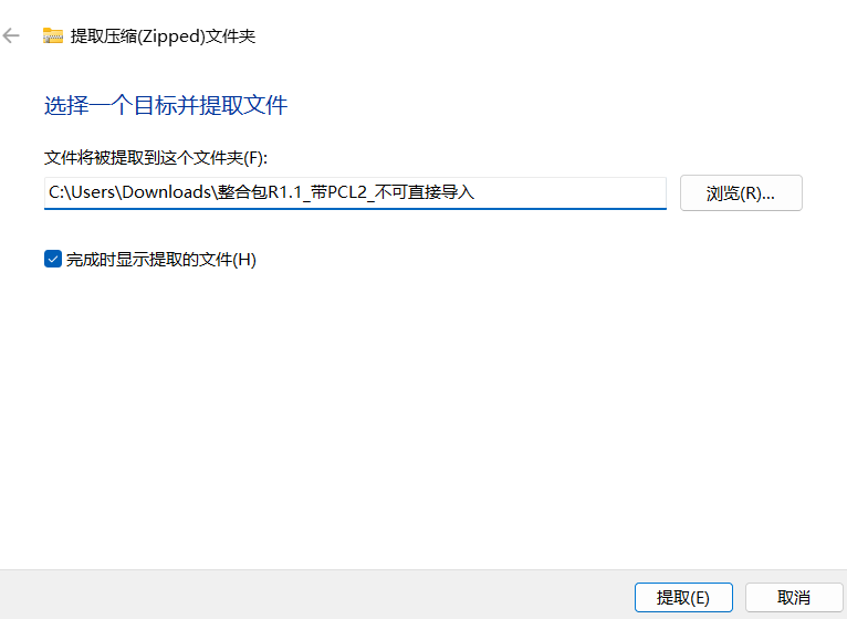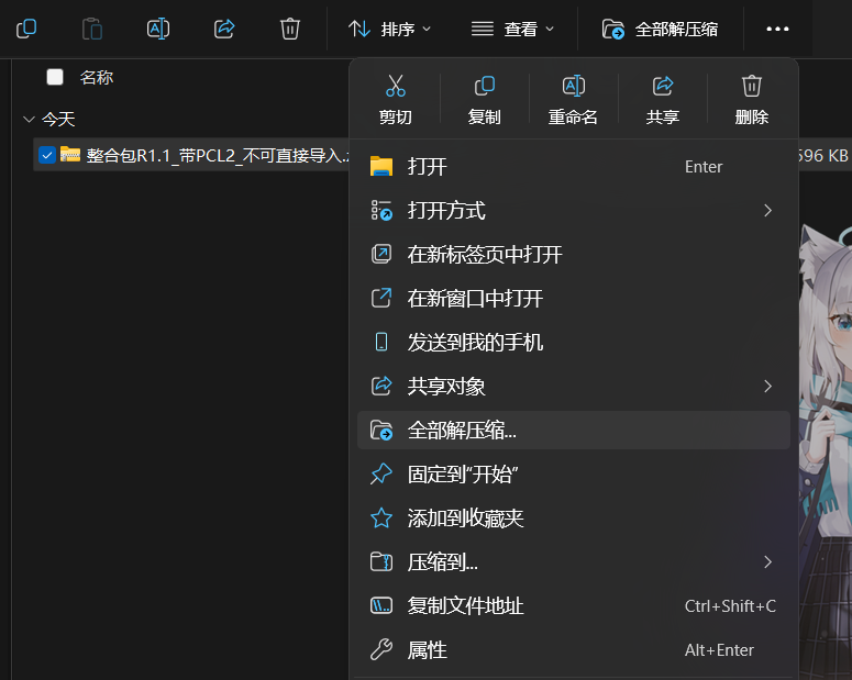 点击文件"整合包Rx.x_带PCL2_不可直接导入.zip"。