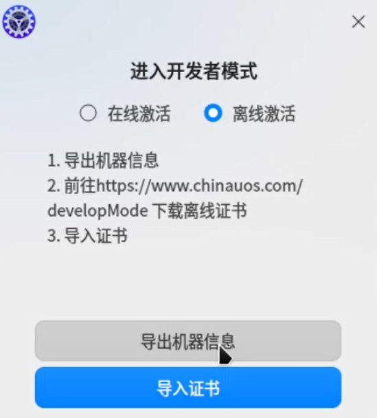 在弹出的对话框中选择在线或者离线激活(此处教程为使用离线激活,在线仅需登录自己的UOS账号即可)。