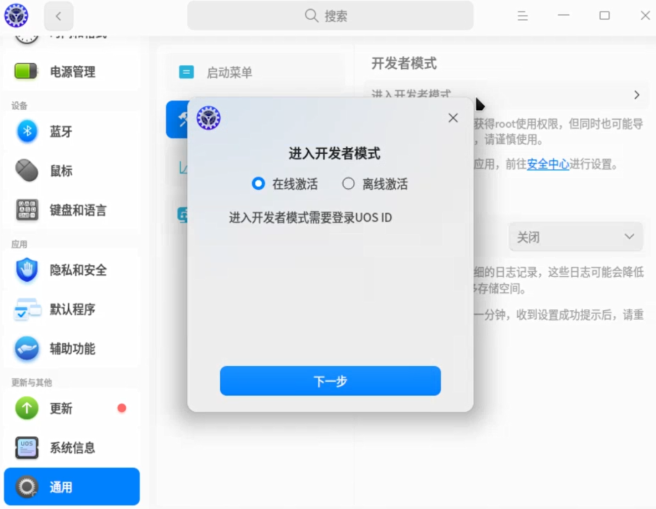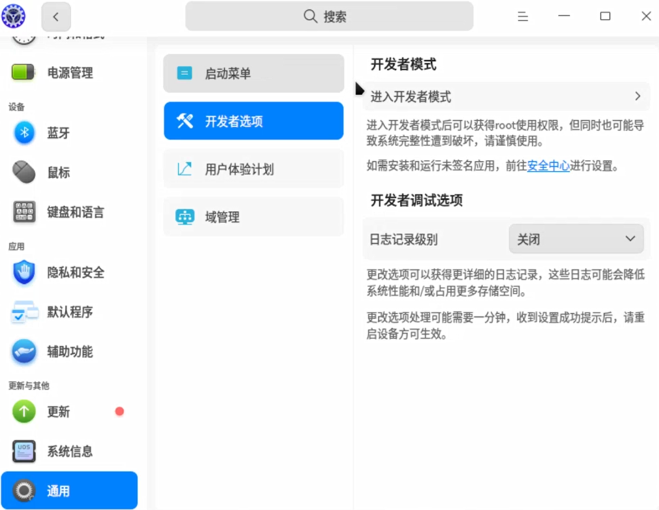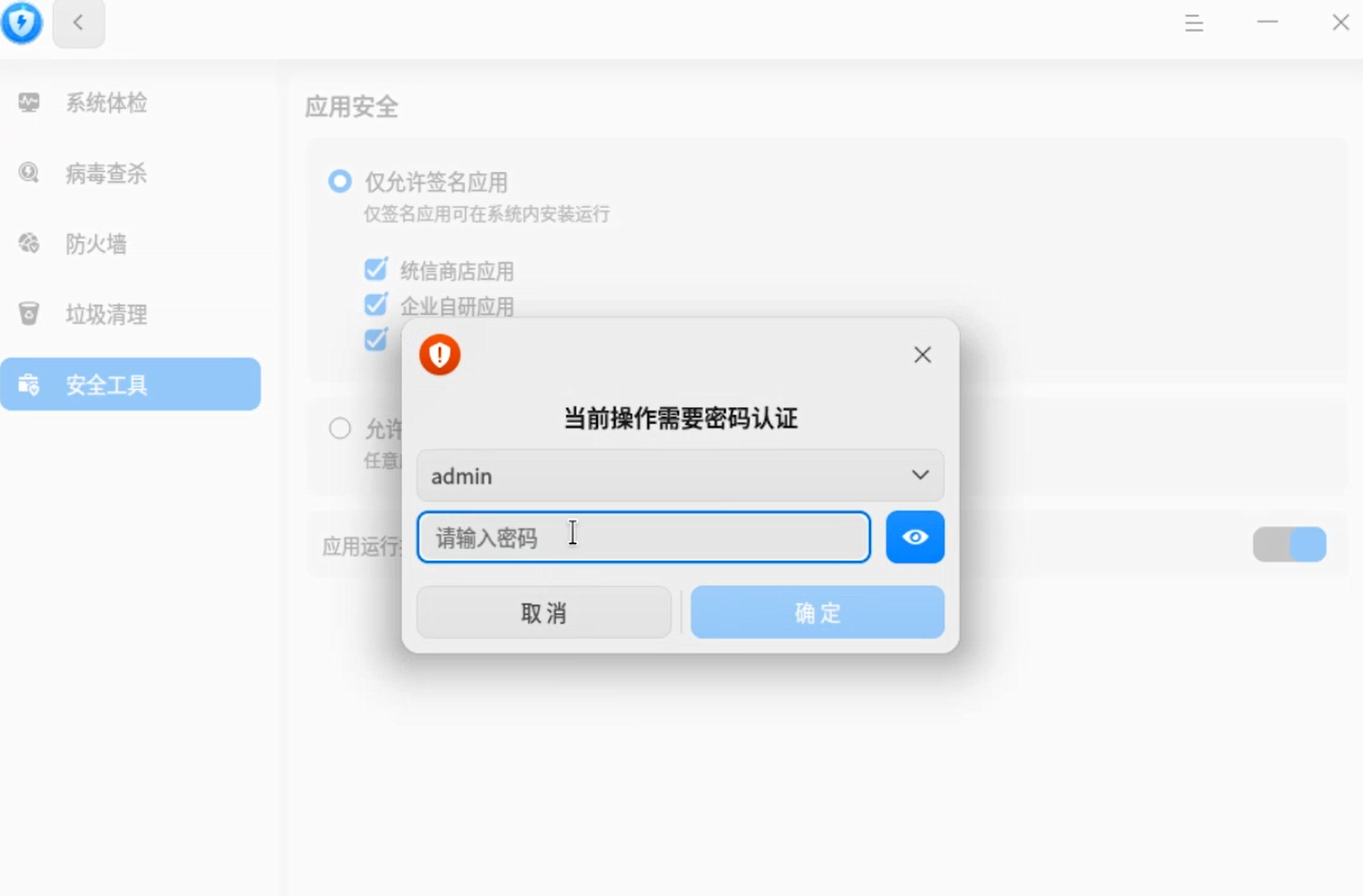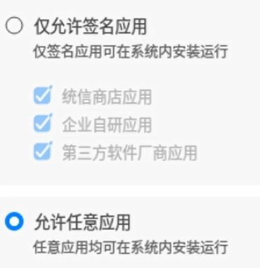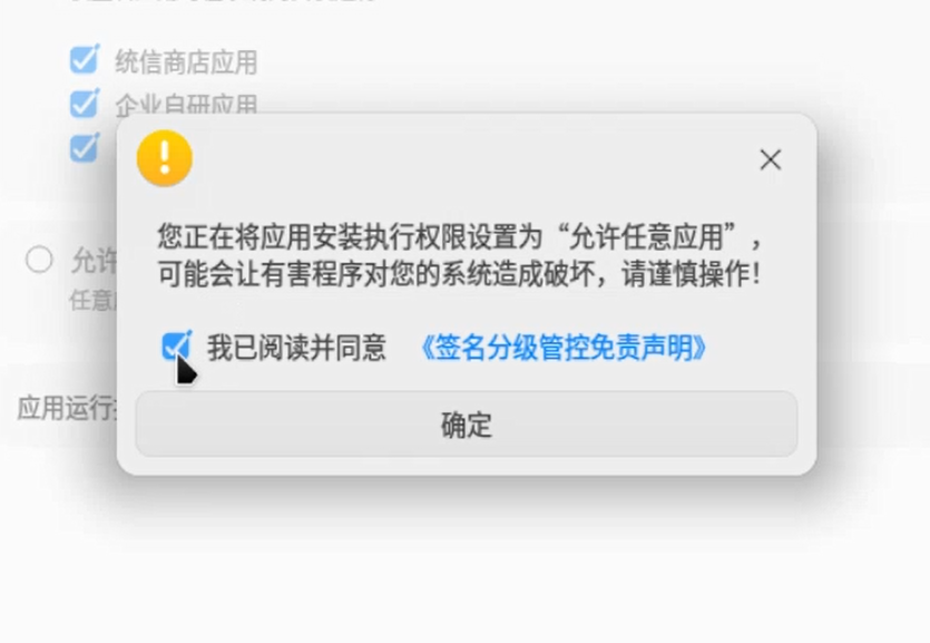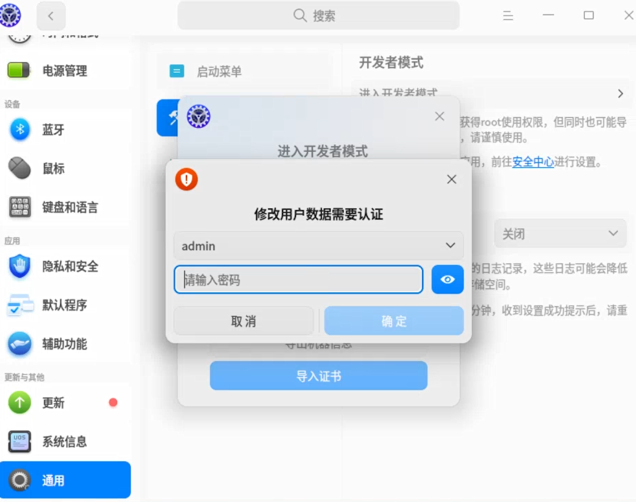 一些特殊发行版(如统信UOS)会对软件安装与root权限(管理员权限)的使用进行较为严格的限制。本段指南即为针对特殊发行版的解决办法。由于目前仍未发现过多特殊限制发行版,此处以统信UOS举例。