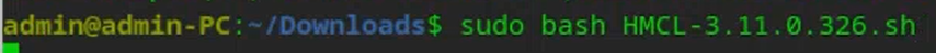 sudo bash xxx.sh,此后输入您的用户密码(如果有要求的话),一般情况下HMCL会自动开始安装javafx,片刻之后即可完成启动。