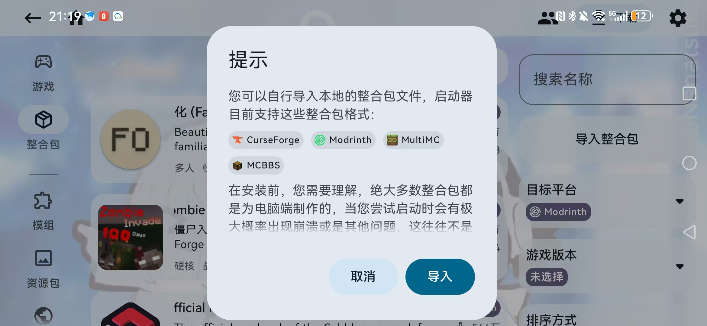 我们不推荐使用pojav launcher等部分启动器,因为无法自动安装整合包,需要手动配置。
